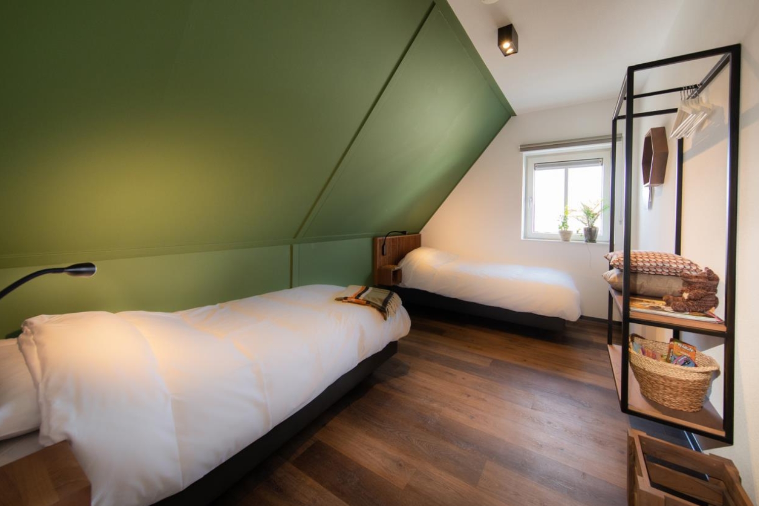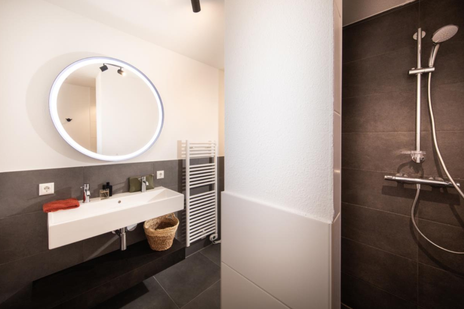 Die Unterkunft verfügt über acht Schlafzimmer, zwei davon befinden sich im Erdgeschoss. Beide verfügen über zwei einzelne Boxspringbetten und teilen sich ein Badezimmer mit Waschbecken und begehbarer Dusche.