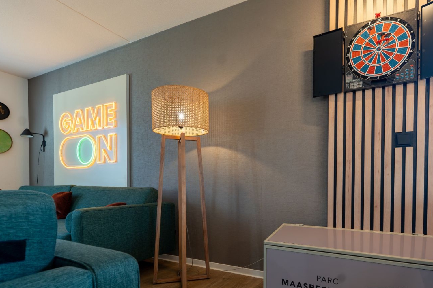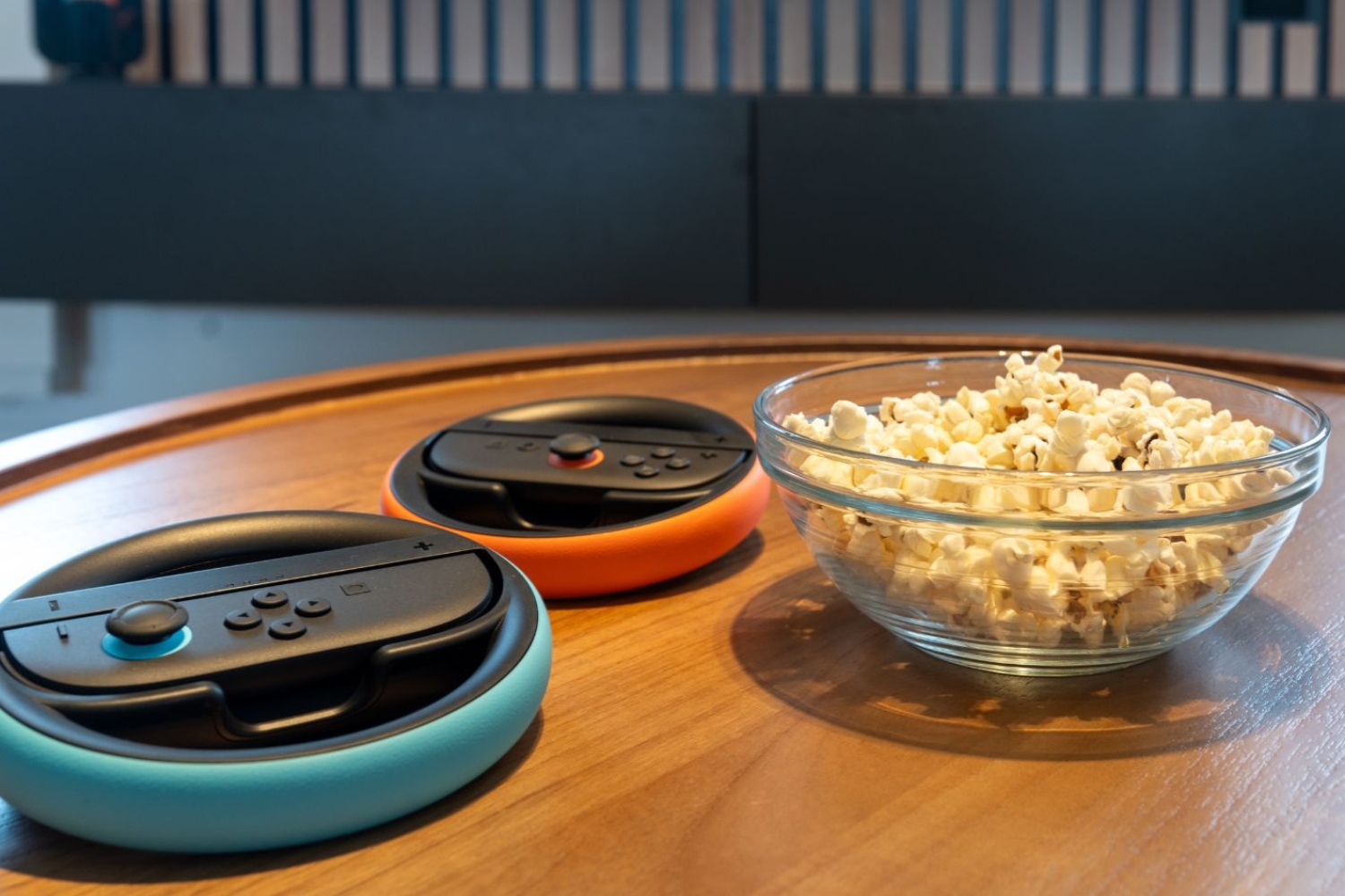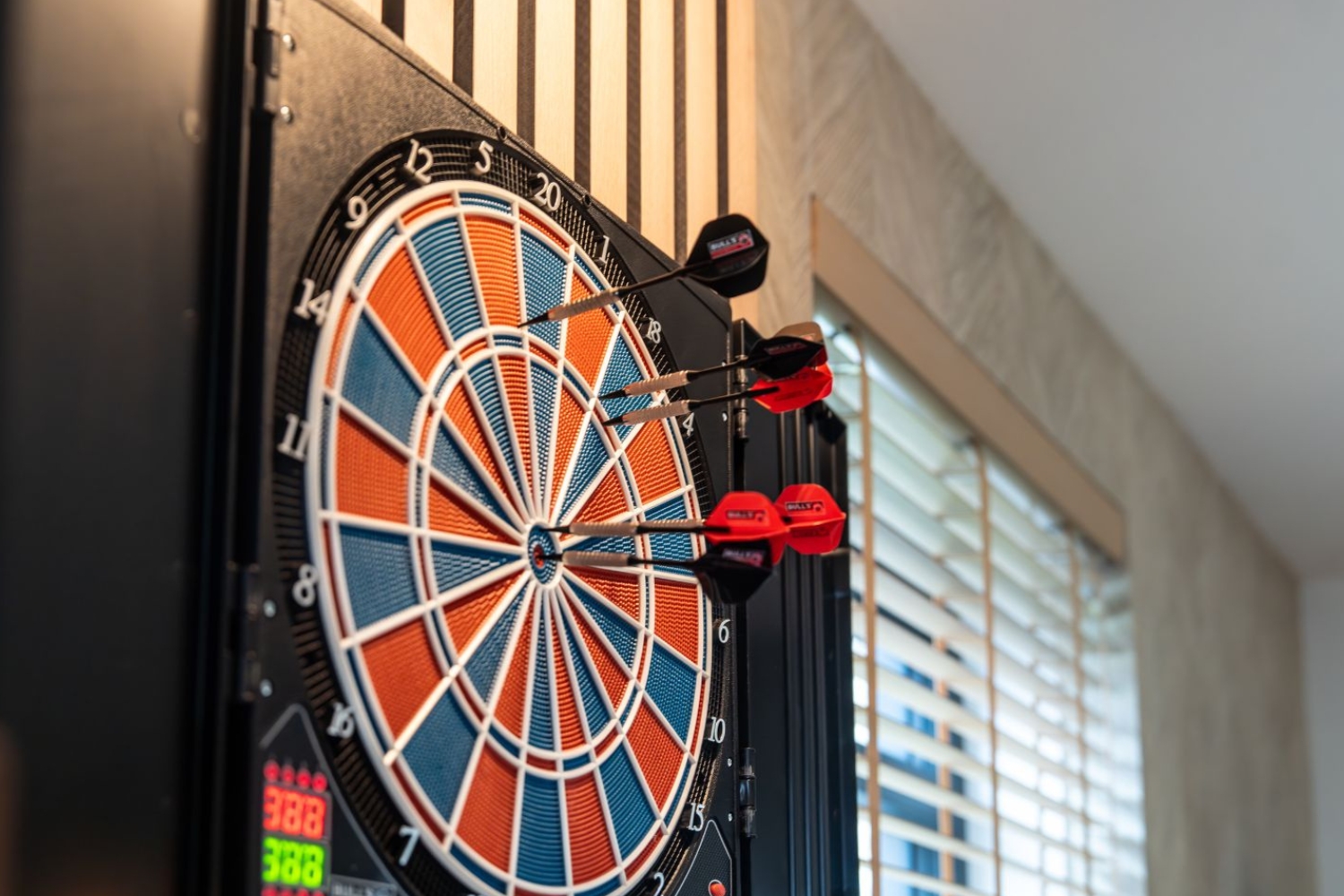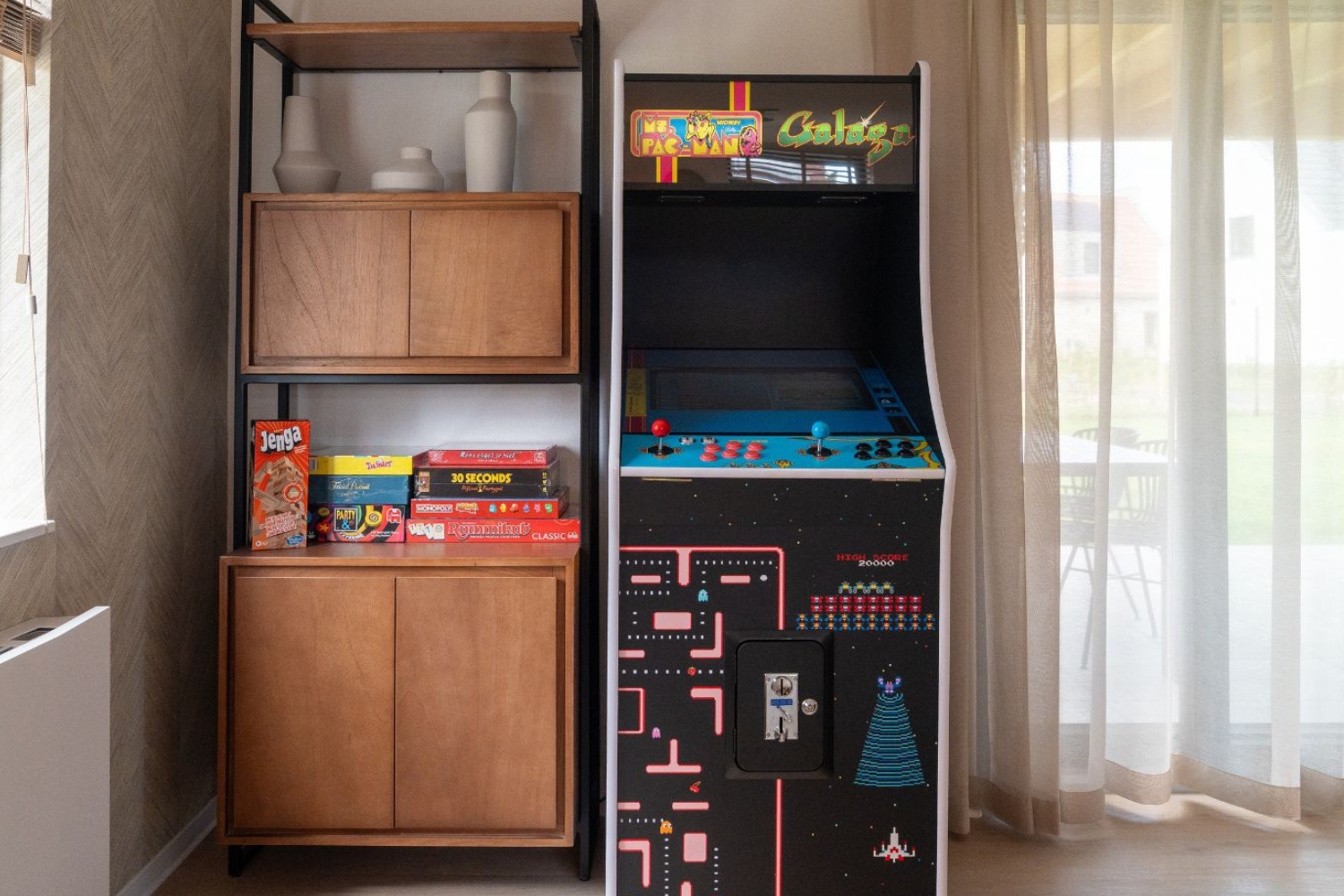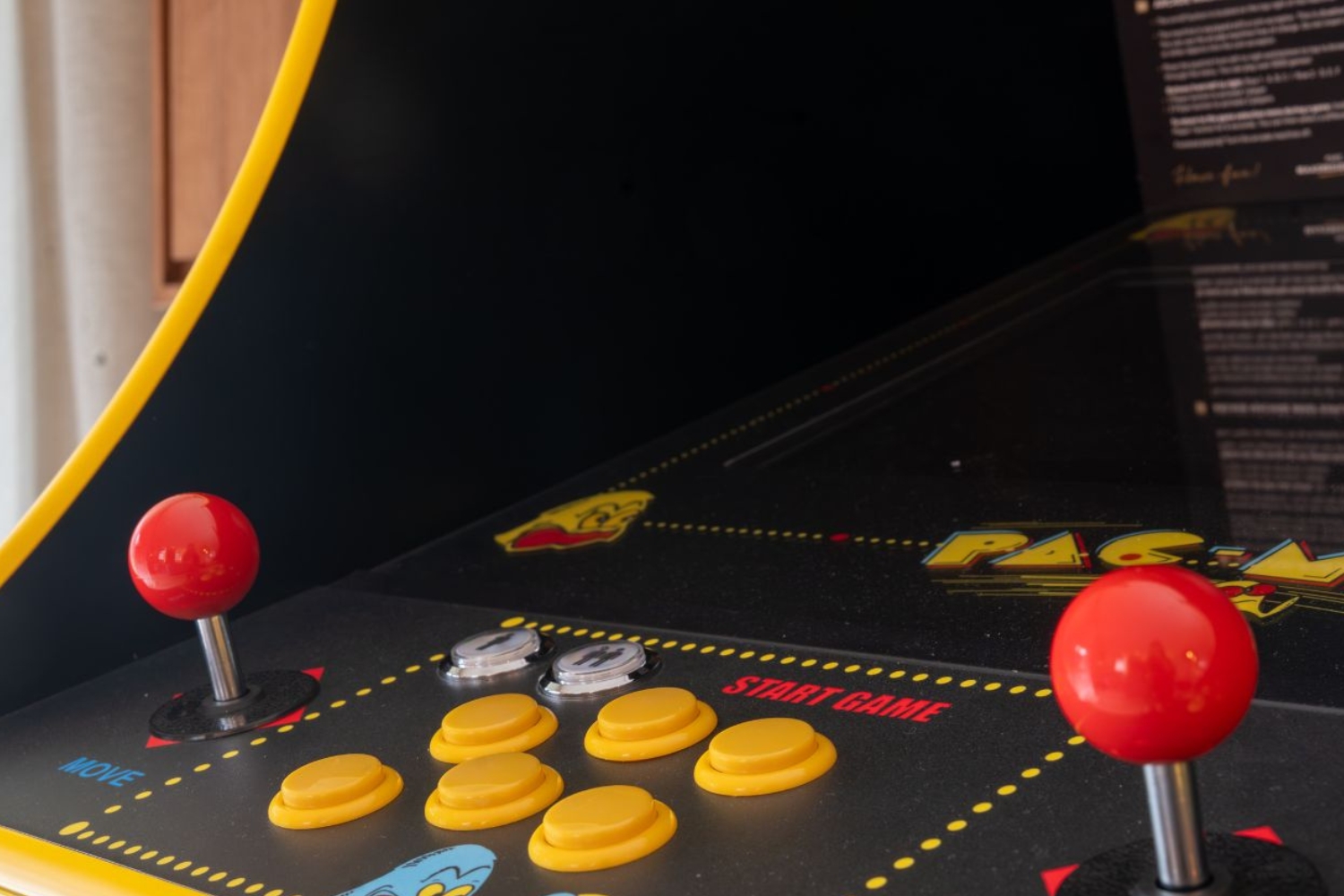 Unsere Premium Game & Grill Villen sind komplett ausgestattet mit einem Gaming- und TV-Paket, das einen riesigen 75-Zoll-Fernseher und ein hochwertiges Audiosystem umfasst. Außerdem finden Sie eine Nintendo Switch-Konsole, eine elektronische Dartscheibe und einen 2-Spieler-Donkey Kong Arcade-Automaten mit 3000 klassischen Spielen.